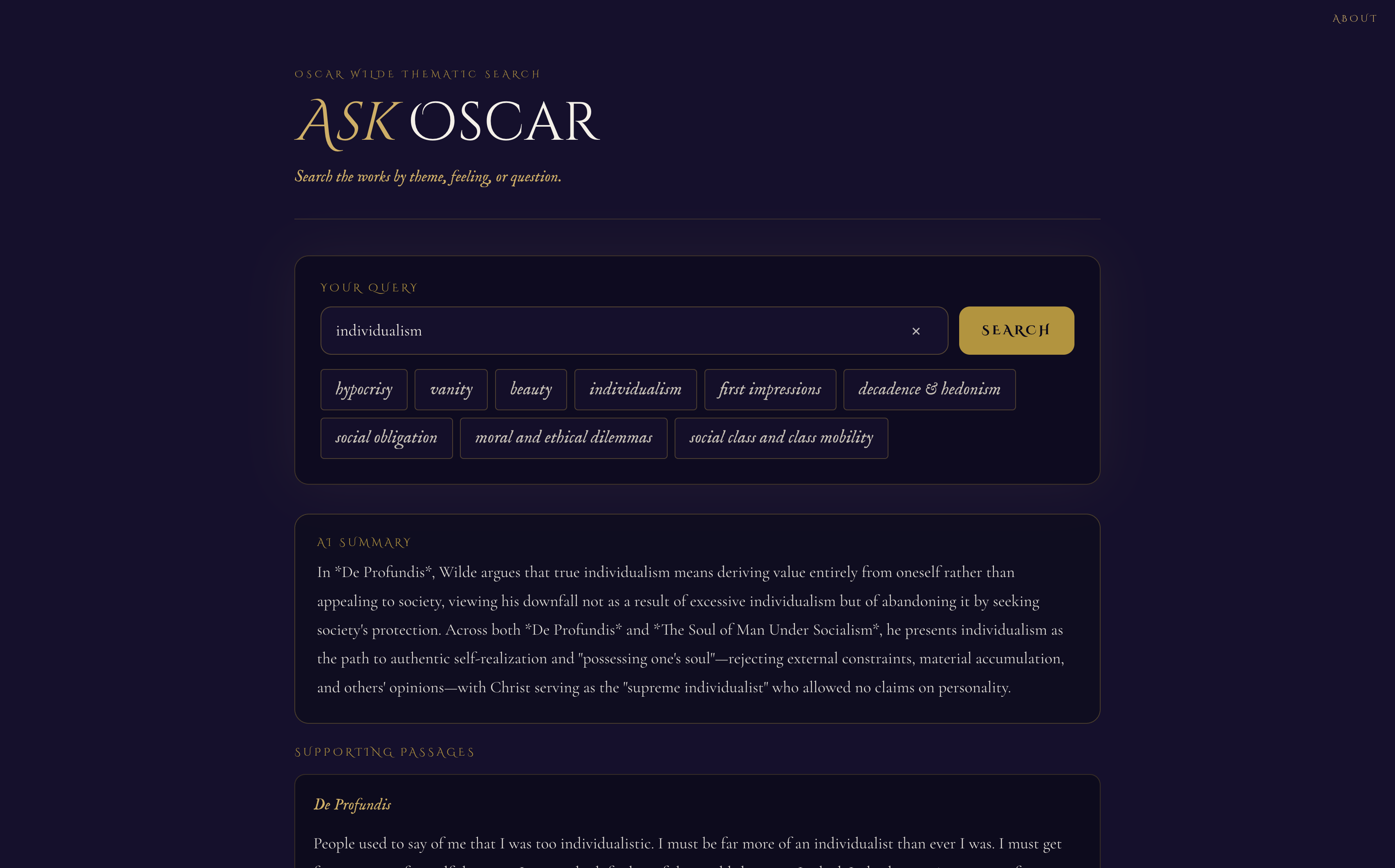 Semantic search across Oscar Wilde works